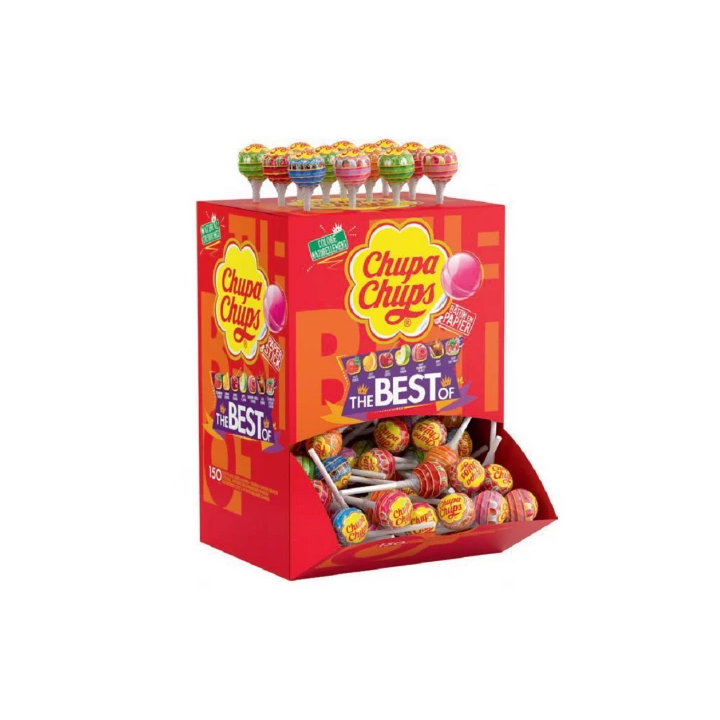 Tubo Chupa Chups Assortis – 150 pièces, l’incontournable référence des amateurs de confiserie. Ce tube contient environ 1,8 kg de sucettes Chupa Chups, soigneusement emballées individuellement pour garantir fraîcheur et praticité.
