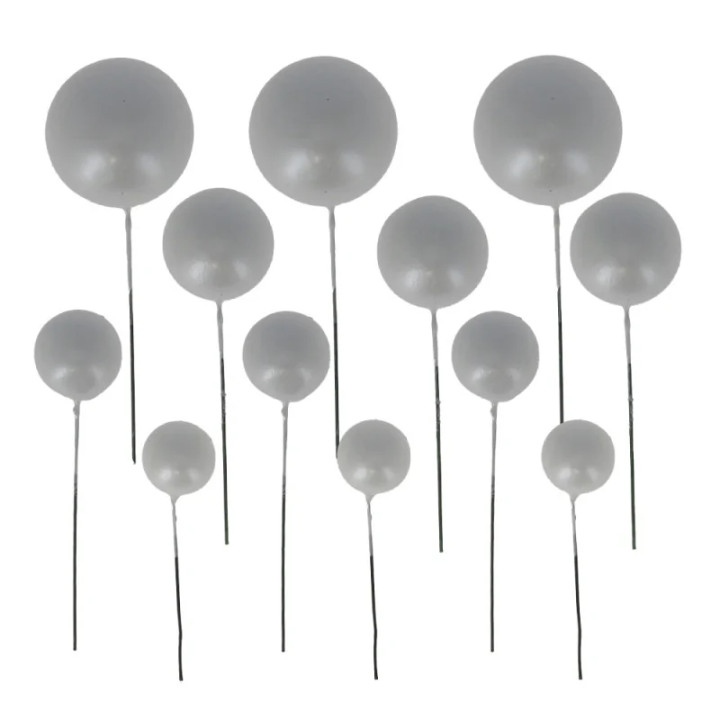 Les décors à piquer 12 boules argent Patisdécor sont parfaits pour apporter une touche moderne et raffinée à vos créations pâtissières. Composés de boules de différentes tailles montées sur tiges, ils permettent de créer facilement des décorations en volume et structurées.