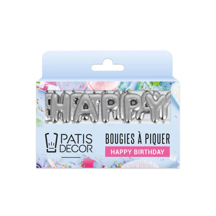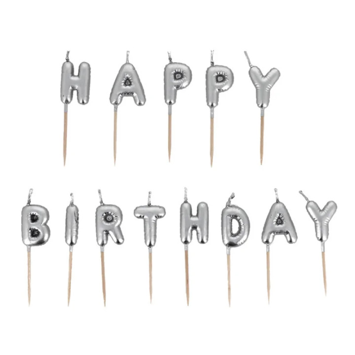 Décorez vos gâteaux avec les bougies Happy Birthday argentées. Idéales pour une décoration élégante et festive d’anniversaire.