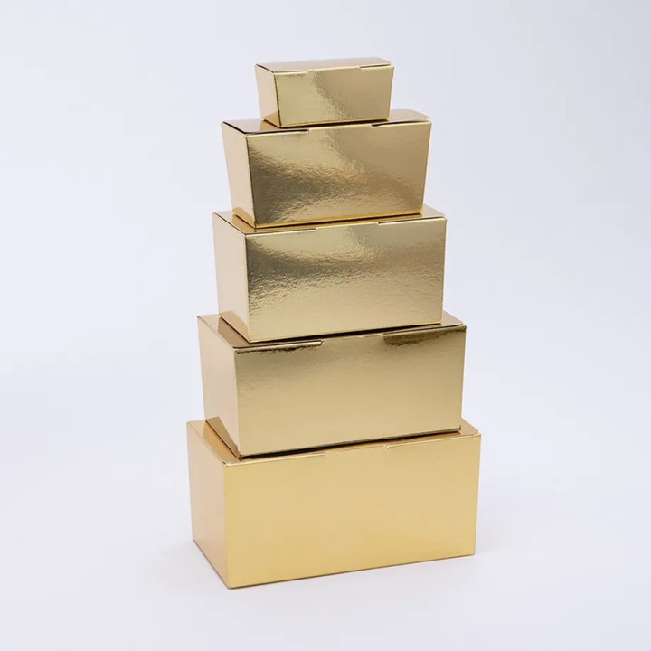 Ballotins or 500g vendus par 25, finition dorée brillante. Livrés à plat, faciles et rapides à monter, parfaits pour assortiments de chocolats généreux et coffrets cadeaux premium.