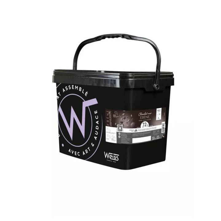 Le chocolat de couverture WEISS Noir Ébène 72% en seau de 10 kg est un chocolat noir premium riche en cacao, idéal pour les professionnels exigeants. Puissant, équilibré et technique, il convient parfaitement aux ganaches, moulages, enrobages et desserts chocolat à forte intensité.