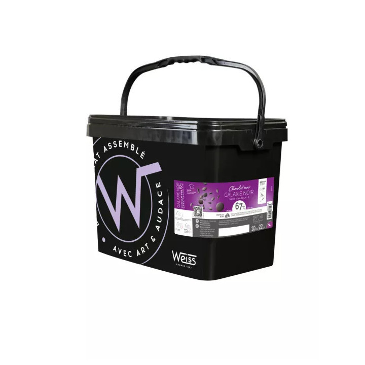 Le chocolat de couverture WEISS Noir Galaxie 67% est un chocolat noir polyvalent conçu pour répondre aux exigences techniques des artisans chocolatiers, pâtissiers et professionnels des métiers de bouche.