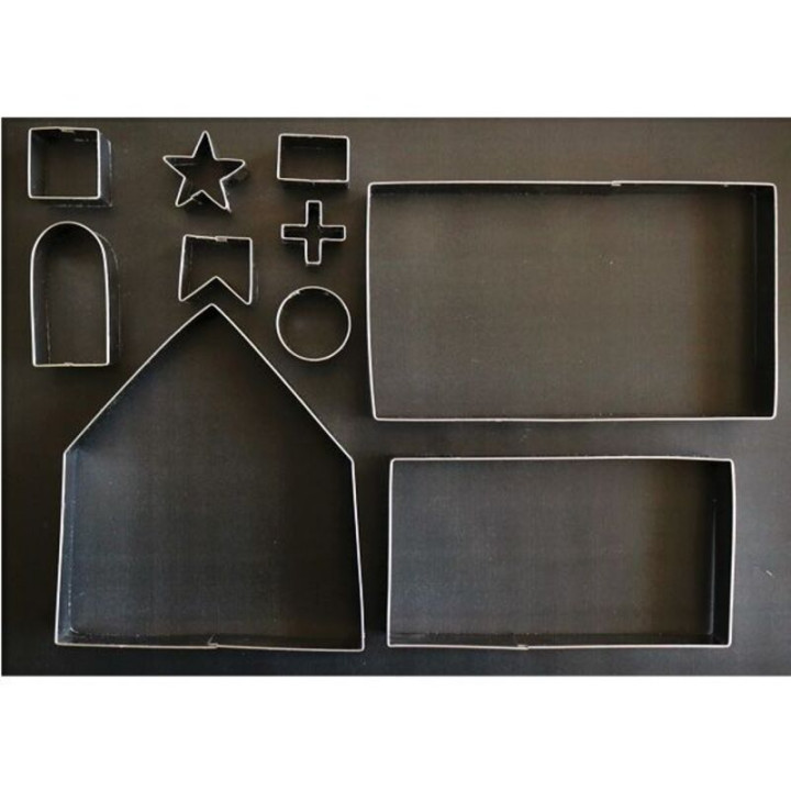 Ce kit maison pain d'épices contient 10 emporte-pièces en inox pour confectionner une maison en pain d'épices :