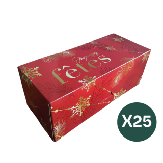 Lot de 25 boîtes à bûche 30 cm en carton blanc rigide. Idéales pour transporter, protéger et présenter vos bûches pâtissières de Noël. Hauteur 10 cm, finition professionnelle.