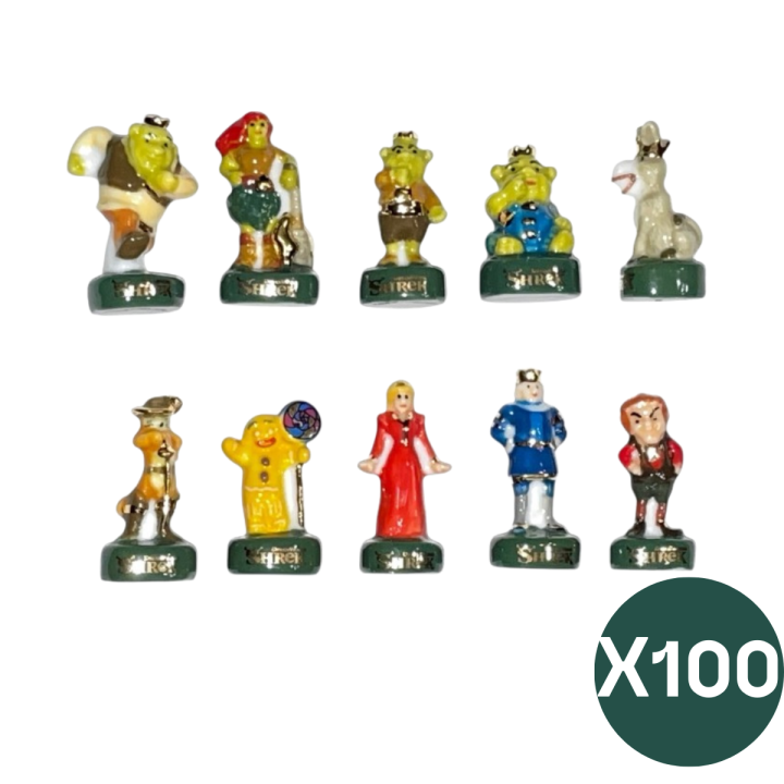 Lot de 100 fèves Incroyable Shrek inspirées du célèbre univers du dessin animé. Idéal pour galettes des rois, professionnels et collectionneurs.
