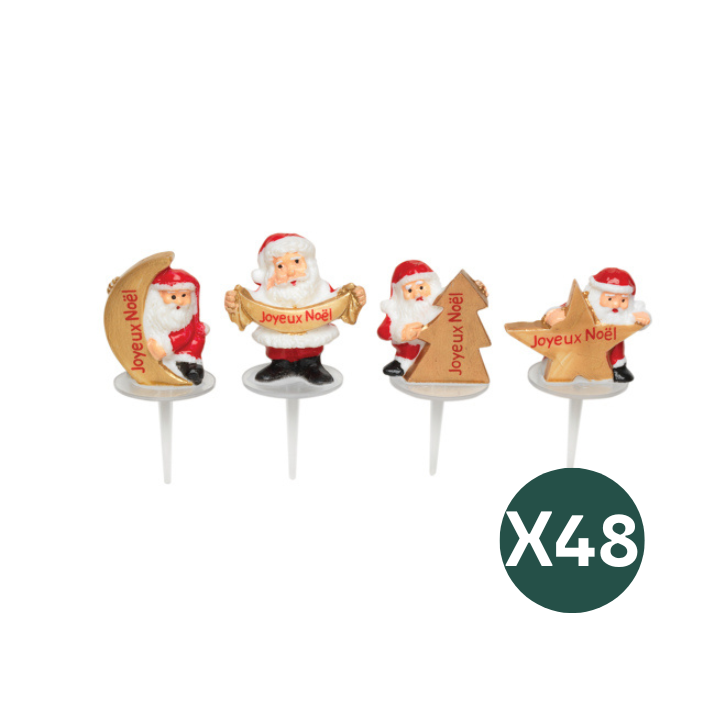 Contenu : 48 figurines “Père Noël Joyeux Noël” assorties sur pic.