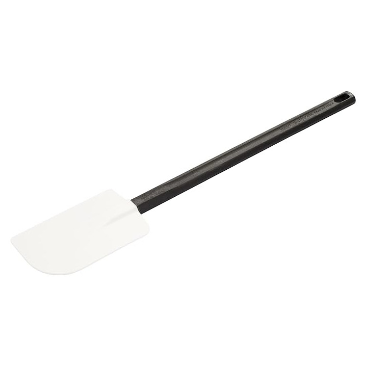Compacte et extrêmement maniable, sa longueur de 250 mm permet un geste précis, idéal pour les récipients de petite et moyenne taille. Sa tête souple assure un raclage parfait sans abîmer vos contenants, tandis que son manche ergonomique offre un confort optimal lors d’un usage prolongé.