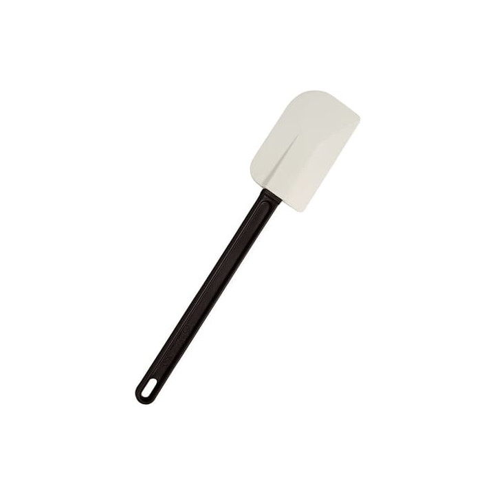Avec sa longueur de 350 mm, elle permet de mélanger, racler et homogénéiser des quantités plus importantes tout en gardant les mains éloignées de la chaleur. Sa tête souple garantit un raclage précis, tandis que son manche ergonomique assure une prise en main confortable et stable.